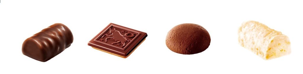 ・ココアクランチチョコ、デリッシュチョコ、チョコinココアクッキー、バニラクランチチョコの4種とバラエティ豊かなラインナップ。